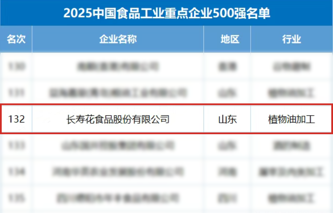 近日,“2025全國(guó)食品工業(yè)科技進(jìn)步工作會(huì)議暨2025中國(guó)食品產(chǎn)業(yè)發(fā)展研究報(bào)告發(fā)布會(huì)”在北京召開,會(huì)議首度發(fā)布了“2025中國(guó)食品工業(yè)重點(diǎn)企業(yè)500家名錄”,其中,共有39家食用油企業(yè)入列,長(zhǎng)壽花食品憑借穩(wěn)健的經(jīng)營(yíng)實(shí)力與行業(yè)影響力成功入選,位列第132位。