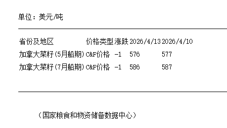 4月13日進(jìn)口油菜籽到國(guó)內(nèi)港口C&F報(bào)價(jià)